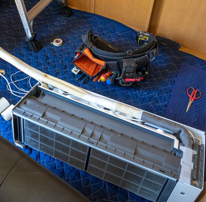 配線処理や仕上がりの美しさなど細部まで丁寧に施工し、手抜きのない確実な工事を徹底しています。見えない部分にもこだわり、長く快適に使えるエアコン環境をご提供します。